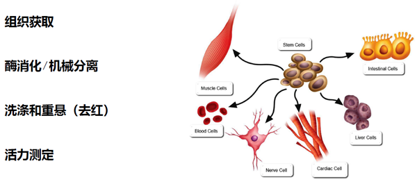 從組織獲得存活單細胞是一個復雜過程,目前市面上組織單細胞化的方法有采用機器處理或者人工處理方法,以上處理方法均存在處理時間長、細胞處于逆境狀態(tài)時間長、 細胞得率低、細胞存活率低、操作繁瑣等問題。單細胞懸液儀結合特定組織松解劑,快速、輕柔、安全、簡捷、高效、自動化的從組織如(脂肪、骨骼肌、動脈血管內皮、心臟、肝臟、脾臟、肺泡、腎臟、腦、腫瘤)30min內全自動完成組織單細胞的解離。