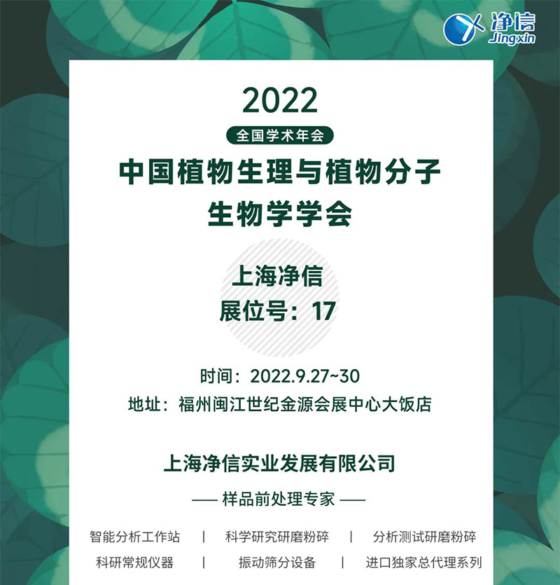 上海凈信誠摯邀請各位專家、老師及學者相聚魅力福州中國植物生理與植物分子生物學學會2022全國學術年會,加強植物生物學領域的交流與合作!現(xiàn)場有精美禮品和專業(yè)團隊解惑答疑,期待您的到來!